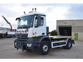 Second-hand truck Mercedes Arocs 1836 with flatbed – Only 32,000 km – Stainless steel platform +- 4.50 m – Snow plate – P.T.O connection with hydraulics (motor or box) – Hub reduction – Air conditioning – Camera – Tire size 13R22.5 - total 19.000kg - tarra 8667 kg - wielbasis 3900 -